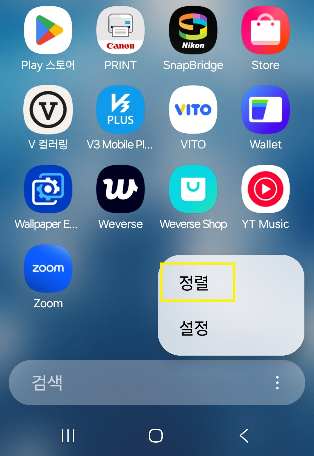가나다 순에서 직접 설정으로 변경해 주면 스크롤 방향이 가로에서 세로로 변경됩니다.