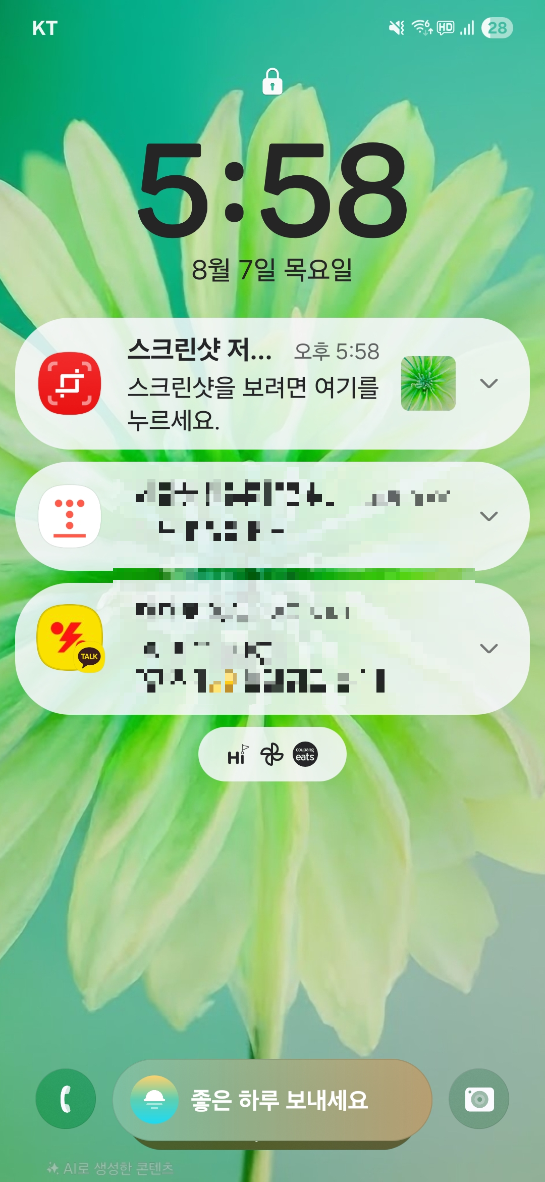 | 갤럭시 One UI 7.0 잠금화면 알림 |