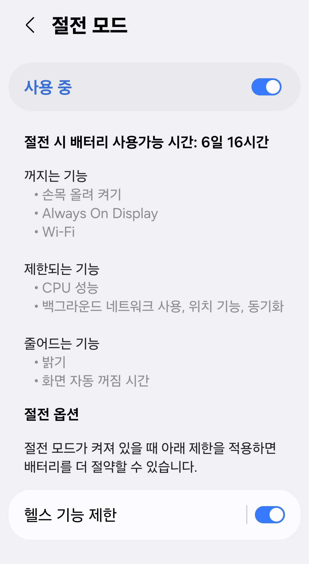 | 절전 모드 켜기 |