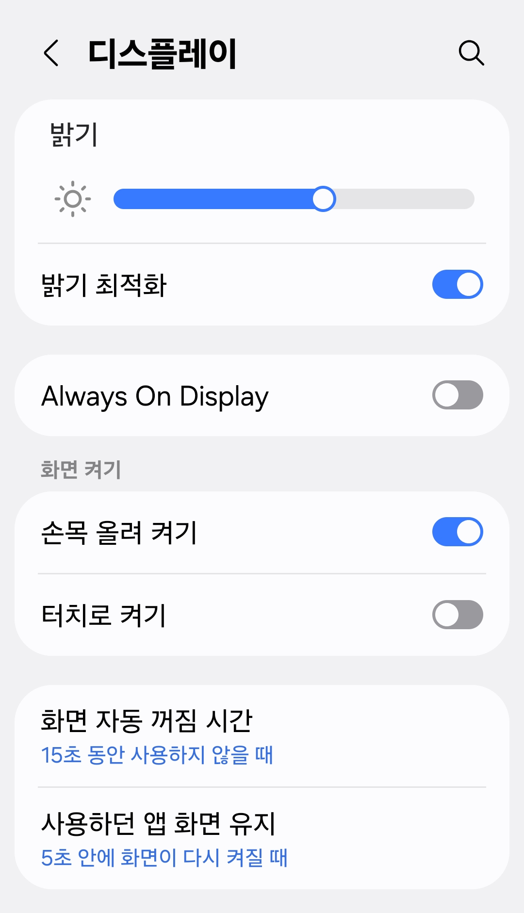 | AOD 비활성화 | 화면 켜짐 시간 감소 |